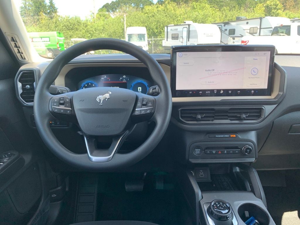 This 2025 Ford Bronco Sport comes equipped with, 110V/400W AC Power Outlet, 2nd Row Carpeted Seatback, Auxiliary Switches & Wiring, Black Diamond Off-Road Package, Brush Guard, Cargo Management System (Shelf/Divider/Table), Cargo Mat, Class II Trailer Tow Pack w/Trailer Sway Control, Equipment Group 200A, Fender Tie Downs, Front & Rear Black Bumpers, Interior Grab Handle, Recovery Hooks, Wheels: 17 Carbonized Gray Painted Aluminum, 4-Wheel Disc Brakes, 6 Speakers, ABS brakes, Air Conditioning, Alloy wheels, AM/FM radio: SiriusXM, AM/FM Stereo, Auto High-beam Headlights, Automatic temperature control, Brake assist, Cloth w/Easy-to-Clean Front Bucket Seats, Compass, Delay-off headlights, Driver door bin, Driver vanity mirror, Dual front impact airbags, Dual front side impact airbags, Electronic Stability Control, Emergency communication system: SYNC 4 911 Assist, Four wheel independent suspension, Front anti-roll bar, Front Bucket Seats, Front Center Armrest, Front reading lights, Fully automatic headlights, Heated door mirrors, Illuminated entry, Knee airbag, Low tire pressure warning, Occupant sensing airbag, Outside temperature display, Overhead airbag, Overhead console, Panic alarm, Passenger door bin, Passenger vanity mirror, Power door mirrors, Power steering, Power windows, Radio data system, Rear anti-roll bar, Rear Parking Sensors, Rear reading lights, Rear seat center armrest, Rear window defroster, Rear window wiper, Remote keyless entry, Security system, SiriusXM, Speed control, Speed-sensing steering, Speed-Sensitive Wipers, Split folding rear seat, Steering wheel mounted audio controls, SYNC 4 w/Enhanced Voice Recognition, Tachometer, Telescoping steering wheel, Tilt steering wheel, Traction control, Trip computer, Variably intermittent wipers, Wheels: 17 Carbonized Gray-Painted Aluminum, 110V/400W AC Power Outlet, 2nd Row Carpeted Seatback, Auxiliary Switches & Wiring, Black Diamond Off-Road Package, Brush Guard, Cargo Management System (Shelf/Divider/Table), Cargo Mat, Class II Trailer Tow Pack w/Trailer Sway Control, Equipment Group 200A, Fender Tie Downs, Front & Rear Black Bumpers, Interior Grab Handle, Recovery Hooks, Wheels: 17 Carbonized Gray Painted Aluminum. Shadow Black 2025 Ford Bronco Sport Big Bend 4WD 8-Speed Automatic 1.5L EcoBoost