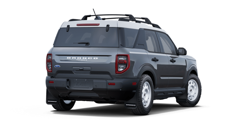 This 2025 Ford Bronco Sport comes equipped with, Equipment Group 250A, 4-Wheel Disc Brakes, 6 Speakers, ABS brakes, Air Conditioning, Alloy wheels, AM/FM radio: SiriusXM, AM/FM Stereo, Auto High-beam Headlights, Automatic temperature control, Brake assist, Compass, Delay-off headlights, Driver door bin, Driver vanity mirror, Dual front impact airbags, Dual front side impact airbags, Electronic Stability Control, Emergency communication system: SYNC 4 911 Assist, Four wheel independent suspension, Front anti-roll bar, Front Bucket Seats, Front Center Armrest, Front Driver/Passenger Seat Back Map Pockets, Front reading lights, Fully automatic headlights, Heated door mirrors, Illuminated entry, Knee airbag, Low tire pressure warning, Occupant sensing airbag, Outside temperature display, Overhead airbag, Overhead console, Panic alarm, Passenger door bin, Passenger vanity mirror, Plaid Cloth Front Bucket Seats, Power door mirrors, Power steering, Power windows, Radio data system, Rear anti-roll bar, Rear Parking Sensors, Rear reading lights, Rear seat center armrest, Rear window defroster, Rear window wiper, Remote keyless entry, Security system, SiriusXM, Speed control, Speed-sensing steering, Speed-Sensitive Wipers, Split folding rear seat, Steering wheel mounted audio controls, SYNC 4 w/Enhanced Voice Recognition, Tachometer, Telescoping steering wheel, Tilt steering wheel, Traction control, Trip computer, Variably intermittent wipers, Wheels: 17 Oxford White-Painted Aluminum, Equipment Group 250A. Carbonized Gray Metallic 2025 Ford Bronco Sport Heritage 4WD 8-Speed Automatic 1.5L EcoBoost