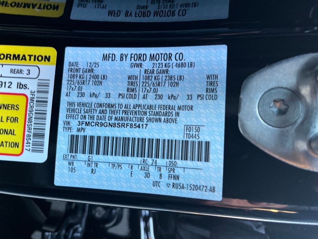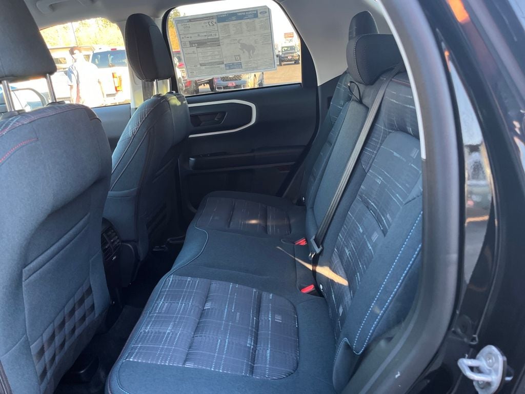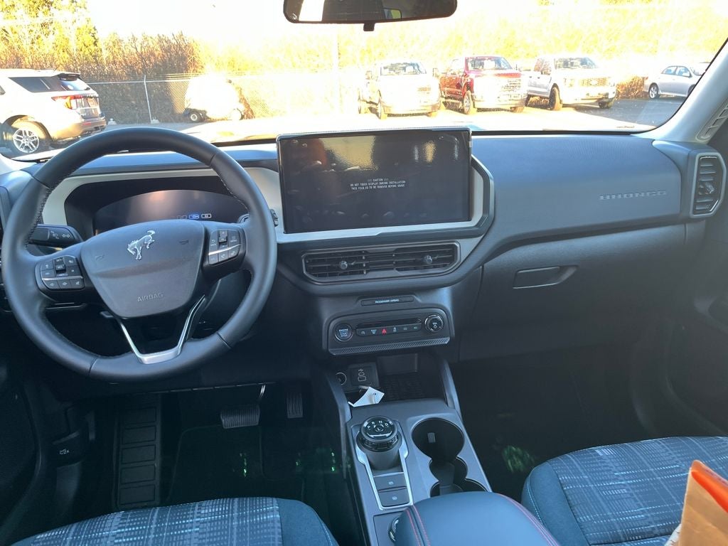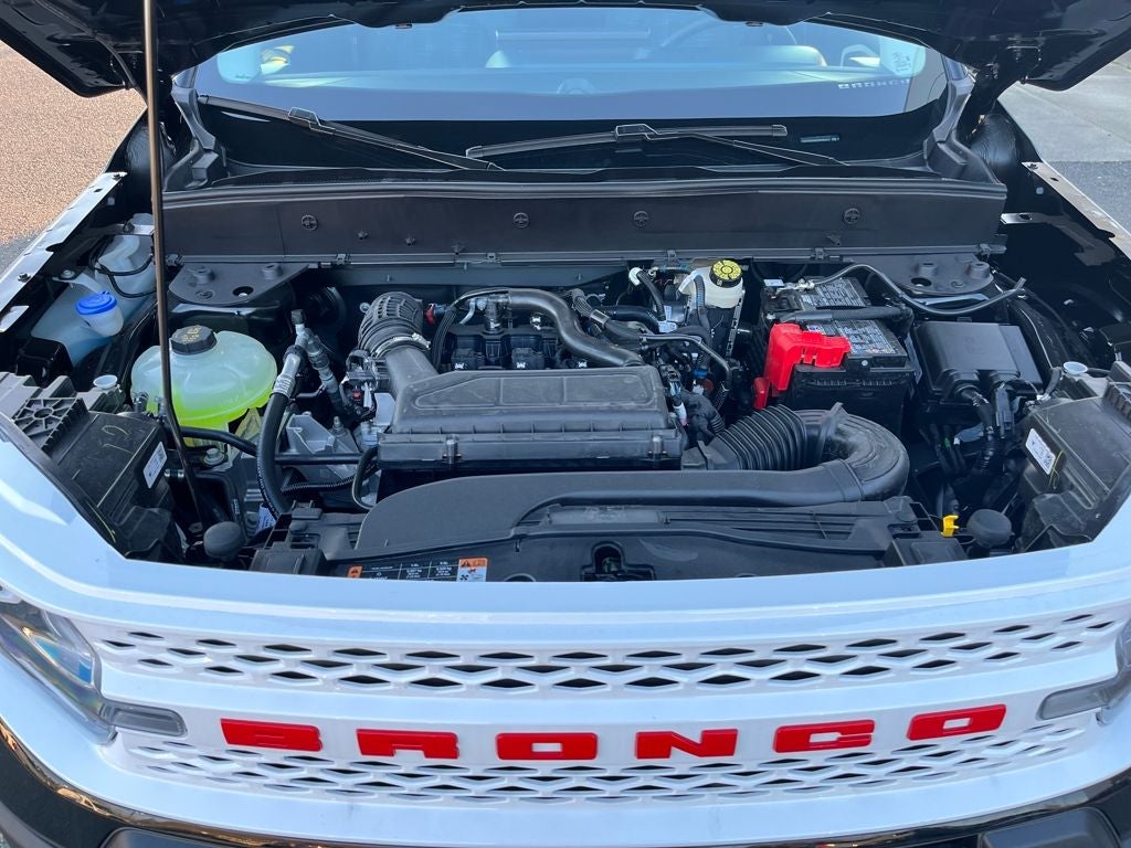 This 2025 Ford Bronco Sport comes equipped with, Convenience Package, Equipment Group 250A, First Aid Kit, Front Driver/Passenger Seat Back Map Pockets, Heated 8-Way Power Driver's Seat, LED Fog Lamps, On-Road Assistance Kit (DIO), Premium Wrapped Steering Wheel, Universal Garage Door Opener (UGDO), 4-Wheel Disc Brakes, 6 Speakers, ABS brakes, Air Conditioning, Alloy wheels, AM/FM radio: SiriusXM, AM/FM Stereo, Auto High-beam Headlights, Automatic temperature control, Brake assist, Compass, Delay-off headlights, Driver door bin, Driver vanity mirror, Dual front impact airbags, Dual front side impact airbags, Electronic Stability Control, Emergency communication system: SYNC 4 911 Assist, Four wheel independent suspension, Front anti-roll bar, Front Bucket Seats, Front Center Armrest, Front reading lights, Fully automatic headlights, Heated door mirrors, Illuminated entry, Knee airbag, Low tire pressure warning, Occupant sensing airbag, Outside temperature display, Overhead airbag, Overhead console, Panic alarm, Passenger door bin, Passenger vanity mirror, Plaid Cloth Front Bucket Seats, Power door mirrors, Power steering, Power windows, Radio data system, Rear anti-roll bar, Rear Parking Sensors, Rear reading lights, Rear seat center armrest, Rear window defroster, Rear window wiper, Remote keyless entry, Security system, SiriusXM, Speed control, Speed-sensing steering, Speed-Sensitive Wipers, Split folding rear seat, Steering wheel mounted audio controls, SYNC 4 w/Enhanced Voice Recognition, Tachometer, Telescoping steering wheel, Tilt steering wheel, Traction control, Trip computer, Variably intermittent wipers, Wheels: 17 Oxford White-Painted Aluminum, Convenience Package, Equipment Group 250A, First Aid Kit, Front Driver/Passenger Seat Back Map Pockets, Heated 8-Way Power Driver's Seat, LED Fog Lamps, On-Road Assistance Kit (DIO), Premium Wrapped Steering Wheel, Universal Garage Door Opener (UGDO). 2025 Ford Bronco Sport Heritage 4WD 8-Speed Automatic 1.5L EcoBoost