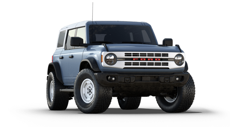 This 2025 Ford Bronco comes equipped with, 7 Speakers, AM/FM radio: SiriusXM with 360L, Auto High-beam Headlights, Brake assist, Convertible HardTop, Equipment Group 662A Mid Package, Exterior Parking Camera Rear, First Aid Kit, Glass rear window, Hard Top Sound Deadening Headliner, Heated front seats, Heated steering wheel, Illuminated entry, Navigation system: Connected Navigation, Trailer Tow Package (DIO), 4-Wheel Disc Brakes, ABS brakes, Air Conditioning, Alloy wheels, AM/FM Stereo, Auto-dimming Rear-View mirror, Automatic temperature control, Compass, Connected Navigation, Convertible roof lining, Delay-off headlights, Driver door bin, Driver vanity mirror, Dual front impact airbags, Dual front side impact airbags, Electronic Stability Control, Emergency communication system: 911 Assist, Front anti-roll bar, Front Bucket Seats, Front Center Armrest, Front dual zone A/C, Front fog lights, Front reading lights, Front wheel independent suspension, Fully automatic headlights, Heated door mirrors, Integrated roll-over protection, Leather Shift Knob, Low tire pressure warning, Occupant sensing airbag, Outside temperature display, Overhead airbag, Overhead console, Panic alarm, Passenger door bin, Passenger vanity mirror, Plaid Cloth Front Heated Bucket Seats, Power door mirrors, Power steering, Power windows, Radio data system, Rear window defroster, Rear window wiper, Remote keyless entry, Security system, SiriusXM w/360L, Speed control, Split folding rear seat, Steering wheel mounted audio controls, SYNC 4, Tachometer, Telescoping steering wheel, Tilt steering wheel, Traction control, Trip computer, Variably intermittent wipers, Wheels: 17 Unique White, HARD TOP, WHITE-PAINTED, 7 Speakers, AM/FM radio: SiriusXM with 360L, Auto High-beam Headlights, Brake assist, Convertible HardTop, Equipment Group 662A Mid Package, Exterior Parking Camera Rear, First Aid Kit, Glass rear window, Hard Top Sound Deadening Headliner, Heated front seats, Heated steering wheel, Illuminated entry, Navigation system: Connected Navigation, Trailer Tow Package (DIO). Azure Gray Metallic Tri-Coat 2025 Ford Bronco Heritage Edition 4WD 10-Speed Automatic 2.7L EcoBoost V6
