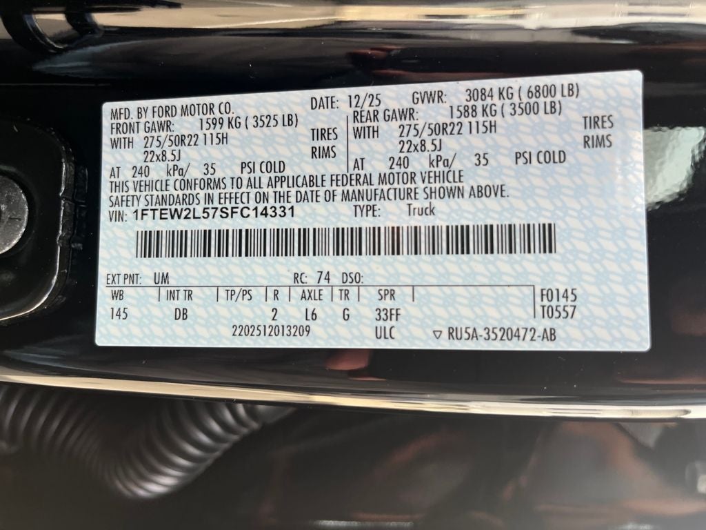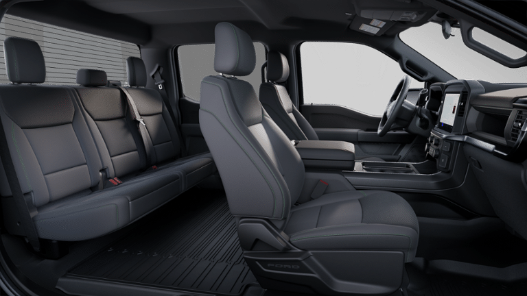 This 2025 Ford F-150 comes equipped with, 4WD, 400W Cab & Bed Outlets, Black Retractable Bed Hooks by Bull Accessories, Console Worksurface, Dual Exhaust w/Black Tips, Electronic Locking w/3.73 Axle Ratio, Equipment Group 200A Mid, Illuminated entry, Illuminated Ford Logo Badge, Internet access capable: FordPass Connect 5G, LED Fog Lamps w/LED Cornering Lamp, Lobo Package, Lower Body Ground Effects, Mobile Office Package, Painted Grille, Signature Lighting, Tough Bed Spray-In Bedliner, Two-Speed Auto 4WD w/Neutral Towing Capability, Wheels: 22 Aluminum, 4-Wheel Disc Brakes, 6 Speakers, ABS brakes, Air Conditioning, Alloy wheels, AM/FM radio: SiriusXM with 360L, Auto High-beam Headlights, Brake assist, Bumpers: body-color, Compass, Delay-off headlights, Driver door bin, Dual front impact airbags, Dual front side impact airbags, Electronic Stability Control, Emergency communication system: SYNC 4 911 Assist, Front anti-roll bar, Front Bucket Seats, Front Center Armrest, Front License Plate Bracket, Front reading lights, Front wheel independent suspension, Fully automatic headlights, GVWR: 6,650 lbs Payload Package, Heated door mirrors, Low tire pressure warning, Occupant sensing airbag, Outside temperature display, Overhead airbag, Overhead console, Panic alarm, Passenger door bin, Passenger vanity mirror, Power door mirrors, Power steering, Power windows, Radio data system, Radio: AM/FM Stereo w/SiriusXM 360L, Rear Parking Sensors, Rear step bumper, Rear window defroster, Remote keyless entry, Security system, Speed control, Split folding rear seat, Steering wheel mounted audio controls, SYNC 4 w/Enhanced Voice Recognition, Tachometer, Telescoping steering wheel, Tilt steering wheel, Traction control, Tray Style Floor Liner w/Carpet Mats, Trip computer, Variably intermittent wipers, Voltmeter, 4WD, 400W Cab & Bed Outlets, Black Retractable Bed Hooks by Bull Accessories, Console Worksurface, Dual Exhaust w/Black Tips, Electronic Locking w/3.73 Axle Ratio, Equipment Group 200A Mid, Illuminated entry, Illuminated Ford Logo Badge, Internet access capable: FordPass Connect 5G, LED Fog Lamps w/LED Cornering Lamp, Lobo Package, Lower Body Ground Effects, Mobile Office Package, Painted Grille, Signature Lighting, Tough Bed Spray-In Bedliner, Two-Speed Auto 4WD w/Neutral Towing Capability, Wheels: 22 Aluminum. Agate Black Metallic 2025 Ford F-150 STX 4WD 10-Speed Automatic 5.0L V8