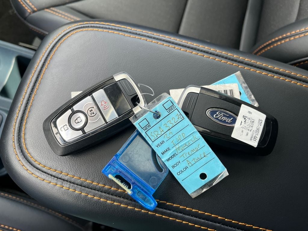 ABS brakes, Active Cruise Control, Alloy wheels, Compass, Electronic Stability Control, Front dual zone A/C, Heated door mirrors, Heated front seats, Illuminated entry, Low tire pressure warning, Navigation System, Remote keyless entry, Traction control. Azure Gray Metallic Tri-Coat 2025 Ford Maverick Tremor AWD 8-Speed Automatic EcoBoost 2.0L I4 GTDi DOHC Turbocharged VCT