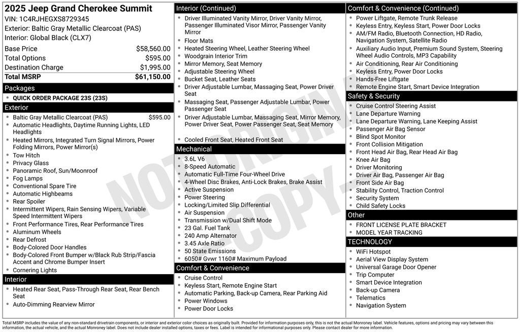 The 2025 Jeep Grand Cherokee Summit 4x4 redefines premium adventure with its sophisticated styling, exceptional comfort, and intelligent capability. Visit I-5 CDJR in Chehalis today to experience the perfect balance of luxury and performance. Price includes: Rebates may not apply to all customers and may not be stackable$2250 - 2025 National Retail Bonus Cash . Exp. 03/02/2026