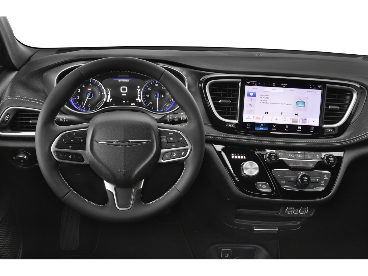Inside, the Pacifica Select delivers class-leading versatility with 2nd- and 3rd-row Stow n Go seating, allowing you to switch from passengers to cargo in seconds. Standard features include: