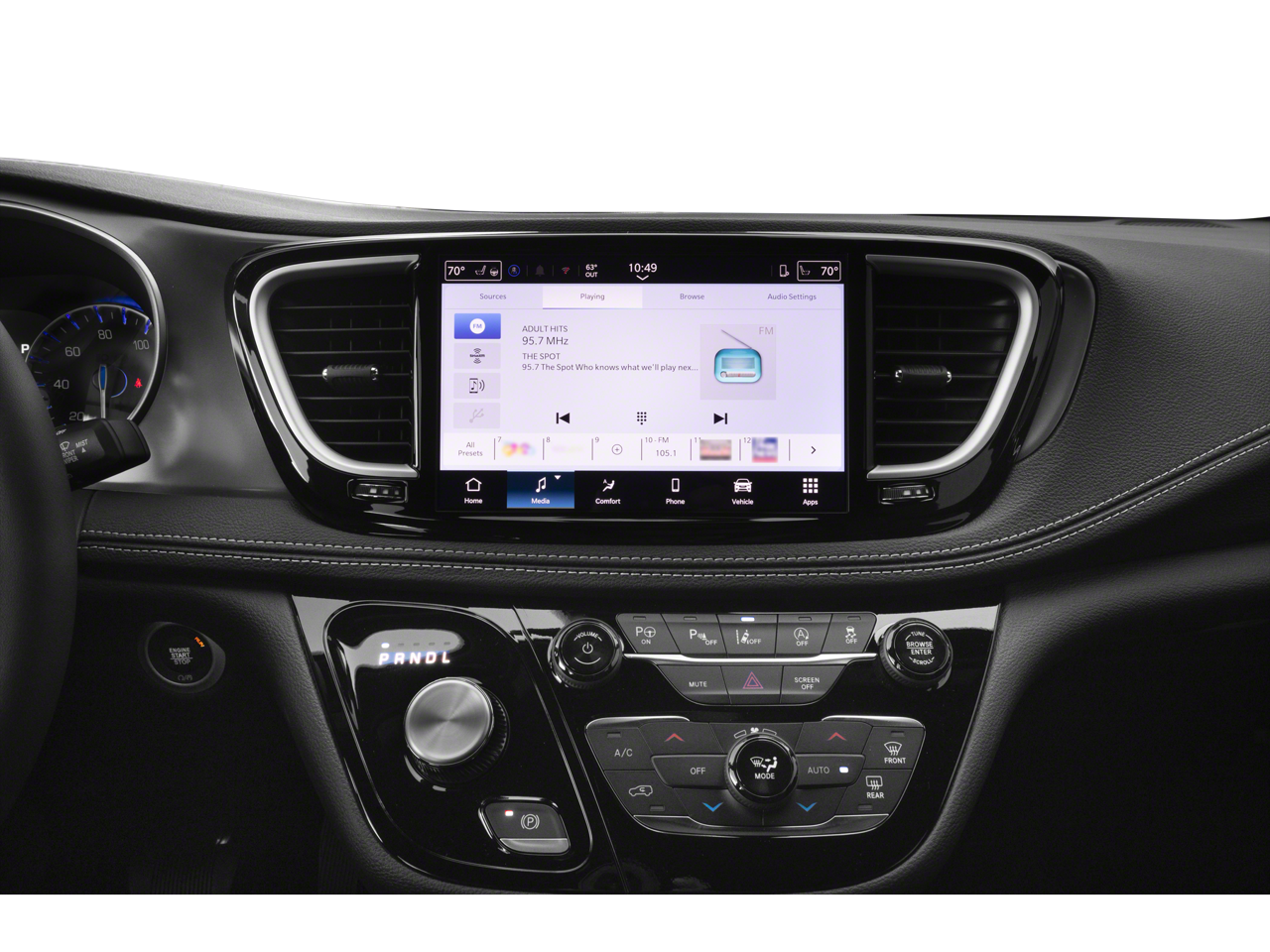 Uconnect 5 system with a 10.1-inch touchscreen, Apple CarPlay, Android Auto, and 4G LTE Wi-Fi hotspot