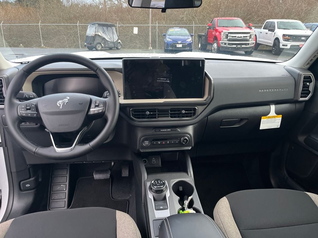 This 2026 Ford Bronco Sport comes equipped with, AM/FM Stereo, Cloth with Easy-to-Clean Front Bucket Seats, Convenience Package, Equipment Group 200A Standard Package, Flood Light Adjustable Liftgate, Ford Connectivity Package (1-Year Included), Front Driver/Passenger Seat Back Map Pockets, Heated 8-Way Power Driver's Seat, LED Fog Lamps, Premium Wrapped Steering Wheel, SiriusXM with 360L, SYNC 4 with Enhanced Voice Recognition, Wheels: 17 Carbonized Gray Painted Aluminum, 4-Wheel Disc Brakes, 6 Speakers, ABS brakes, Air Conditioning, Alloy wheels, AM/FM radio: SiriusXM with 360L, Apple CarPlay/Android Auto, Auto High-beam Headlights, Automatic temperature control, Brake assist, Compass, Delay-off headlights, Driver door bin, Driver vanity mirror, Dual front impact airbags, Dual front side impact airbags, Electronic Stability Control, Emergency communication system: SYNC 4 911 Assist, Exterior Parking Camera Rear, Four wheel independent suspension, Front anti-roll bar, Front Bucket Seats, Front Center Armrest, Front reading lights, Fully automatic headlights, Heated door mirrors, Illuminated entry, Internet access capable: 5G Modem - Ford Connectivity Package, Knee airbag, Low tire pressure warning, Occupant sensing airbag, Outside temperature display, Overhead airbag, Overhead console, Panic alarm, Passenger door bin, Passenger vanity mirror, Power door mirrors, Power steering, Power windows, Radio data system, Rear anti-roll bar, Rear Parking Sensors, Rear reading lights, Rear seat center armrest, Rear window defroster, Rear window wiper, Remote keyless entry, Security system, Speed control, Speed-sensing steering, Speed-Sensitive Wipers, Split folding rear seat, Steering wheel mounted audio controls, Tachometer, Telescoping steering wheel, Tilt steering wheel, Traction control, Trip computer, Variably intermittent wipers, AM/FM Stereo, Cloth with Easy-to-Clean Front Bucket Seats, Convenience Package, Equipment Group 200A Standard Package, Flood Light Adjustable Liftgate, Ford Connectivity Package (1-Year Included), Front Driver/Passenger Seat Back Map Pockets, Heated 8-Way Power Driver's Seat, LED Fog Lamps, Premium Wrapped Steering Wheel, SiriusXM with 360L, SYNC 4 with Enhanced Voice Recognition, Wheels: 17 Carbonized Gray Painted Aluminum. 2026 Ford Bronco Sport Big Bend 4WD 8-Speed Automatic 1.5L EcoBoost