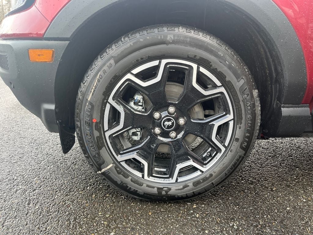 This 2026 Ford Bronco Sport comes equipped with, AM/FM Stereo, Equipment Group 300A Standard Package, Ford Connectivity Package (1-Year Included), Front Driver/Passenger Seat Back Map Pockets, Illuminated entry, Premium Trimmed Heated Front Sport Contour Bucket Seats, SiriusXM with 360L, SYNC 4 with Enhanced Voice Recognition, Wheels: 18 Ebony Black, 4-Wheel Disc Brakes, 6 Speakers, ABS brakes, Air Conditioning, Alloy wheels, AM/FM radio: SiriusXM with 360L, Apple CarPlay/Android Auto, Auto High-beam Headlights, Auto-dimming Rear-View mirror, Automatic temperature control, Brake assist, Compass, Delay-off headlights, Driver door bin, Driver vanity mirror, Dual front impact airbags, Dual front side impact airbags, Electronic Stability Control, Emergency communication system: SYNC 4 911 Assist, Exterior Parking Camera Rear, Four wheel independent suspension, Front anti-roll bar, Front Bucket Seats, Front Center Armrest, Front dual zone A/C, Front fog lights, Front reading lights, Fully automatic headlights, Heated door mirrors, Heated front seats, Heated steering wheel, Internet access capable: 5G Modem - Ford Connectivity Package, Knee airbag, Low tire pressure warning, Memory seat, Occupant sensing airbag, Outside temperature display, Overhead airbag, Overhead console, Panic alarm, Passenger door bin, Passenger vanity mirror, Power door mirrors, Power driver seat, Power passenger seat, Power steering, Power windows, Radio data system, Rear anti-roll bar, Rear Parking Sensors, Rear reading lights, Rear seat center armrest, Rear window defroster, Rear window wiper, Remote keyless entry, Security system, Speed control, Speed-sensing steering, Speed-Sensitive Wipers, Split folding rear seat, Steering wheel mounted audio controls, Tachometer, Telescoping steering wheel, Tilt steering wheel, Traction control, Trip computer, Variably intermittent wipers, AM/FM Stereo, Equipment Group 300A Standard Package, Ford Connectivity Package (1-Year Included), Front Driver/Passenger Seat Back Map Pockets, Illuminated entry, Premium Trimmed Heated Front Sport Contour Bucket Seats, SiriusXM with 360L, SYNC 4 with Enhanced Voice Recognition, Wheels: 18 Ebony Black. Ruby Red Metallic Tinted Clearcoat 2026 Ford Bronco Sport Outer Banks 4WD 8-Speed Automatic 1.5L EcoBoost