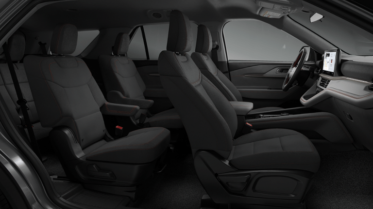 This 2026 Ford Explorer comes equipped with, 4WD, 3rd row seats: bench, 4-Wheel Disc Brakes, 6 Speakers, ABS brakes, Air Conditioning, Alloy wheels, AM/FM radio: SiriusXM with 360L, AM/FM Stereo, Apple CarPlay/Android Auto, Auto High-beam Headlights, Automatic temperature control, Brake assist, Bumpers: body-color, Compass, Delay-off headlights, Driver door bin, Driver vanity mirror, Dual front impact airbags, Dual front side impact airbags, Electronic Stability Control, Emergency communication system: 911 Assist, Exterior Parking Camera Rear, Four wheel independent suspension, Front anti-roll bar, Front Bucket Seats, Front Center Armrest, Front dual zone A/C, Front reading lights, Fully automatic headlights, Heated door mirrors, Illuminated entry, Knee airbag, Low tire pressure warning, Navigation System, Occupant sensing airbag, Outside temperature display, Overhead airbag, Overhead console, Panic alarm, Passenger door bin, Passenger vanity mirror, Power door mirrors, Power driver seat, Power steering, Power windows, Rear air conditioning, Rear anti-roll bar, Rear reading lights, Rear window defroster, Rear window wiper, Remote keyless entry, Security system, Speed control, Speed-sensing steering, Speed-Sensitive Wipers, Split folding rear seat, Spoiler, Steering wheel mounted audio controls, Tachometer, Telescoping steering wheel, Tilt steering wheel, Traction control, Trip computer, Variably intermittent wipers, Wheels: 18 Sparkle Silver-Painted Aluminum, 4WD. 2026 Ford Explorer Active 4WD 10-Speed Automatic 2.3L EcoBoost I-4