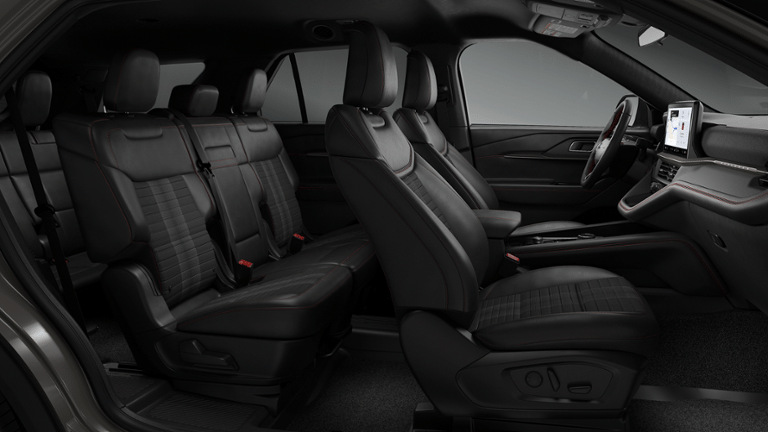 This 2026 Ford Explorer comes equipped with, 4WD, 10 Speakers, 3rd row seats: bench, 4-Wheel Disc Brakes, ABS brakes, Air Conditioning, Alloy wheels, AM/FM radio: SiriusXM with 360L, Apple CarPlay/Android Auto, Auto High-beam Headlights, Automatic temperature control, Brake assist, Bumpers: body-color, Compass, Delay-off headlights, Driver door bin, Driver vanity mirror, Dual front impact airbags, Dual front side impact airbags, Electronic Stability Control, Emergency communication system: 911 Assist, Exterior Parking Camera Rear, Four wheel independent suspension, Front anti-roll bar, Front Bucket Seats, Front Center Armrest, Front dual zone A/C, Front fog lights, Front reading lights, Fully automatic headlights, Garage door transmitter, Heated door mirrors, Heated front seats, Heated steering wheel, Heated Unique Cloth Captain's Chairs, Illuminated entry, Knee airbag, Leather steering wheel, Low tire pressure warning, Navigation System, Occupant sensing airbag, Outside temperature display, Overhead airbag, Overhead console, Panic alarm, Passenger door bin, Passenger vanity mirror, Power door mirrors, Power driver seat, Power Liftgate, Power passenger seat, Power steering, Power windows, Radio: B&O Sound System by Bang and Olufsen, Rear air conditioning, Rear anti-roll bar, Rear reading lights, Rear window defroster, Rear window wiper, Remote keyless entry, Security system, Speed control, Speed-sensing steering, Speed-Sensitive Wipers, Split folding rear seat, Spoiler, Steering wheel mounted audio controls, Tachometer, Telescoping steering wheel, Tilt steering wheel, Traction control, Trip computer, Variably intermittent wipers, Wheels: 20 Ebony-Painted Machined Aluminum, 4WD. 2026 Ford Explorer ST-Line 4WD 10-Speed Automatic 2.3L EcoBoost I-4