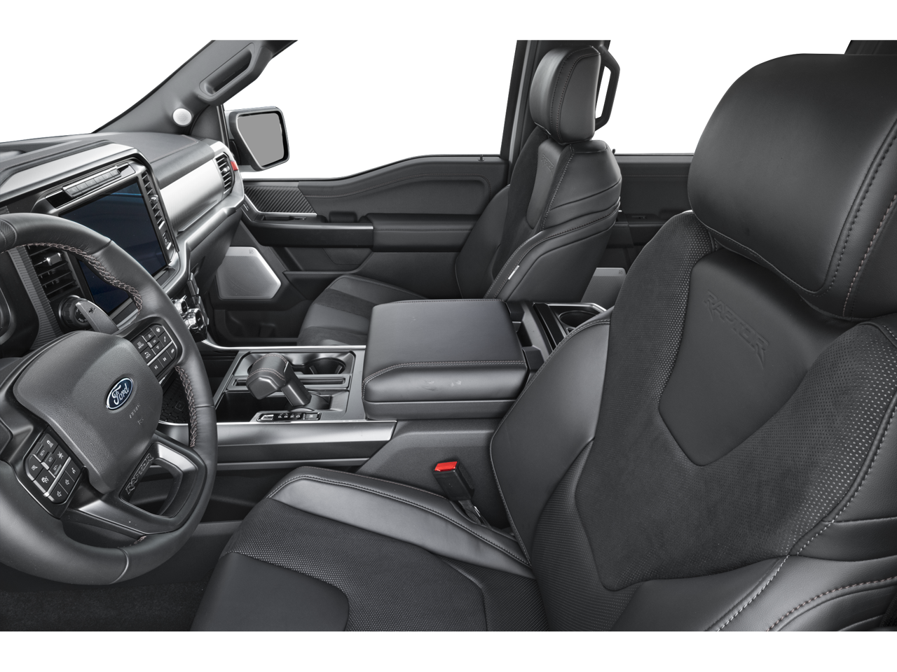 This 2026 Ford F-150 comes equipped with, 4WD, 14 Speakers, 17 Cast Aluminum Wheels, 4-Wheel Disc Brakes, ABS brakes, Adjustable pedals, Air Conditioning, Alloy wheels, AM/FM radio: SiriusXM with 360L, Auto High-beam Headlights, Auto tilt-away steering wheel, Auto-dimming door mirrors, Auto-dimming Rear-View mirror, Automatic temperature control, Brake assist, Bumpers: body-color, Compass, Delay-off headlights, Driver door bin, Driver vanity mirror, Dual front impact airbags, Dual front side impact airbags, Electronic Locking with 4.10 Axle Ratio, Electronic Stability Control, Emergency communication system: SYNC 4 911 Assist, Ford Connectivity Package (1-Year Included), Front anti-roll bar, Front Bucket Seats, Front Center Armrest, Front dual zone A/C, Front fog lights, Front reading lights, Front wheel independent suspension, Fully automatic headlights, Garage door transmitter, Heads-Up Display, Heated door mirrors, Heated front seats, Heated rear seats, Heated steering wheel, Illuminated entry, Internet access capable: 5G Modem - Ford Connectivity Package, Lane Departure Warning System, Leather steering wheel, Leather Trimmed Seats, Low tire pressure warning, Memory seat, Navigation system: Connected Navigation, Occupant sensing airbag, Outside temperature display, Overhead airbag, Overhead console, Panic alarm, Passenger door bin, Passenger vanity mirror, Pedal memory, Power door mirrors, Power driver seat, Power passenger seat, Power steering, Power windows, Radio data system, Radio: B&O Unleashed Sound System by Bang & Olufsen, Rain sensing wipers, Rear reading lights, Rear step bumper, Rear window defroster, Remote keyless entry, Security system, Speed control, Speed-sensing steering, Split folding rear seat, Steering wheel memory, Steering wheel mounted audio controls, SYNC 4 with Enhanced Voice Recognition, Tachometer, Telescoping steering wheel, Tilt steering wheel, Traction control, Trip computer, Turn signal indicator mirrors, Variably intermittent wipers, Ventilated front seats, 4WD. 2026 Ford F-150 Raptor 4WD 10-Speed Automatic 3.5L V6 EcoBoost High Output