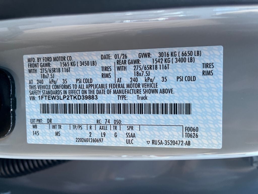 This 2026 Ford F-150 comes equipped with, 4WD, First Aid Kit with Ford Logo, 18 Painted Aluminum Wheels, 3.55 Axle Ratio, 4-Wheel Disc Brakes, 6 Speakers, ABS brakes, Air Conditioning, Alloy wheels, AM/FM radio: SiriusXM with 360L, Auto High-beam Headlights, Brake assist, Bumpers: body-color, Compass, Delay-off headlights, Driver door bin, Driver vanity mirror, Dual front impact airbags, Dual front side impact airbags, Electronic Stability Control, Emergency communication system: SYNC 4 911 Assist, Ford Connectivity Package (1-Year Included), Front anti-roll bar, Front Center Armrest, Front fog lights, Front reading lights, Front wheel independent suspension, Fully automatic headlights, GVWR: 6,650 lbs Payload Package, Heated door mirrors, Illuminated entry, Internet access capable: 5G Modem - Ford Connectivity Package, Low tire pressure warning, Occupant sensing airbag, Outside temperature display, Overhead airbag, Overhead console, Panic alarm, Passenger door bin, Passenger vanity mirror, Power door mirrors, Power steering, Power windows, Radio data system, Radio: AM/FM Stereo with SiriusXM 360L, Rear reading lights, Rear step bumper, Rear window defroster, Remote keyless entry, Security system, Speed control, Split folding rear seat, Steering wheel mounted audio controls, SYNC 4 with Enhanced Voice Recognition, Tachometer, Telescoping steering wheel, Tilt steering wheel, Traction control, Trip computer, Variably intermittent wipers, EXTENDED RANGE 36GAL FUEL TANK, 4WD, First Aid Kit with Ford Logo. 2026 Ford F-150 XLT 4WD 10-Speed Automatic 2.7L V6 EcoBoost