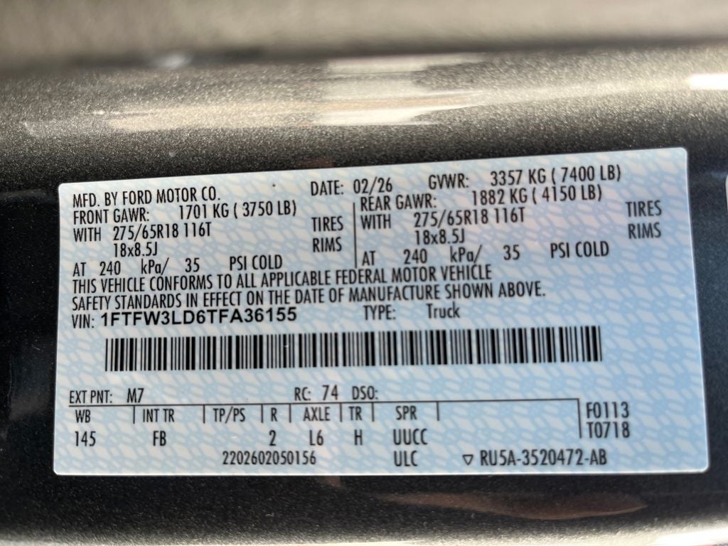 This 2026 Ford F-150 comes equipped with, 3.5L PowerBoost Full-Hybrid V6, 4WD, 6 Black Running Boards, Black Exterior Badging, Black Grille, Black Retractable Bed Hooks by Bull Accessories, Body-Color Door Handles, Body-Color Front and Rear Bumpers, Console Worksurface, Dark Interior Appliques, First Aid Kit with Ford Logo, Ford Connectivity Package (1-Year Included), Gray Box Side Decal, Mobile Office Package, Partitioned Lockable Rear Storage, Tough Bed Spray-in Bedliner, Unique Sport Cloth 40/Console/40 Front-Seats, Wheels: 18 Gloss Black, XLT Black Appearance Package, 18 Painted Aluminum Wheels, 3.31 Axle Ratio, 4-Wheel Disc Brakes, 6 Speakers, ABS brakes, Air Conditioning, Alloy wheels, AM/FM radio: SiriusXM with 360L, Auto High-beam Headlights, Brake assist, Bumpers: body-color, Compass, Delay-off headlights, Driver door bin, Driver vanity mirror, Dual front impact airbags, Dual front side impact airbags, Electronic Stability Control, Emergency communication system: SYNC 4 911 Assist, Front anti-roll bar, Front Center Armrest, Front fog lights, Front reading lights, Front wheel independent suspension, Fully automatic headlights, Heated door mirrors, Illuminated entry, Internet access capable: 5G Modem - Ford Connectivity Package, Low tire pressure warning, Occupant sensing airbag, Outside temperature display, Overhead airbag, Overhead console, Panic alarm, Passenger door bin, Passenger vanity mirror, Power door mirrors, Power steering, Power windows, Radio data system, Radio: AM/FM Stereo with SiriusXM 360L, Rear Parking Sensors, Rear reading lights, Rear step bumper, Rear window defroster, Remote keyless entry, Security system, Speed control, Split folding rear seat, Steering wheel mounted audio controls, SYNC 4 with Enhanced Voice Recognition, Tachometer, Telescoping steering wheel, Tilt steering wheel, Traction control, Trip computer, Variably intermittent wipers, 3.5L PowerBoost Full-Hybrid V6, 4WD, 6 Black Running Boards, Black Exterior Badging, Black Grille, Black Retractable Bed Hooks by Bull Accessories, Body-Color Door Handles, Body-Color Front and Rear Bumpers, Console Worksurface, Dark Interior Appliques, First Aid Kit with Ford Logo, Ford Connectivity Package (1-Year Included), Gray Box Side Decal, Mobile Office Package, Partitioned Lockable Rear Storage, Tough Bed Spray-in Bedliner, Unique Sport Cloth 40/Console/40 Front-Seats, Wheels: 18 Gloss Black, XLT Black Appearance Package. 2026 Ford F-150 XLT 4WD 10-Speed Automatic 3.5L PowerBoost Full-Hybrid V6