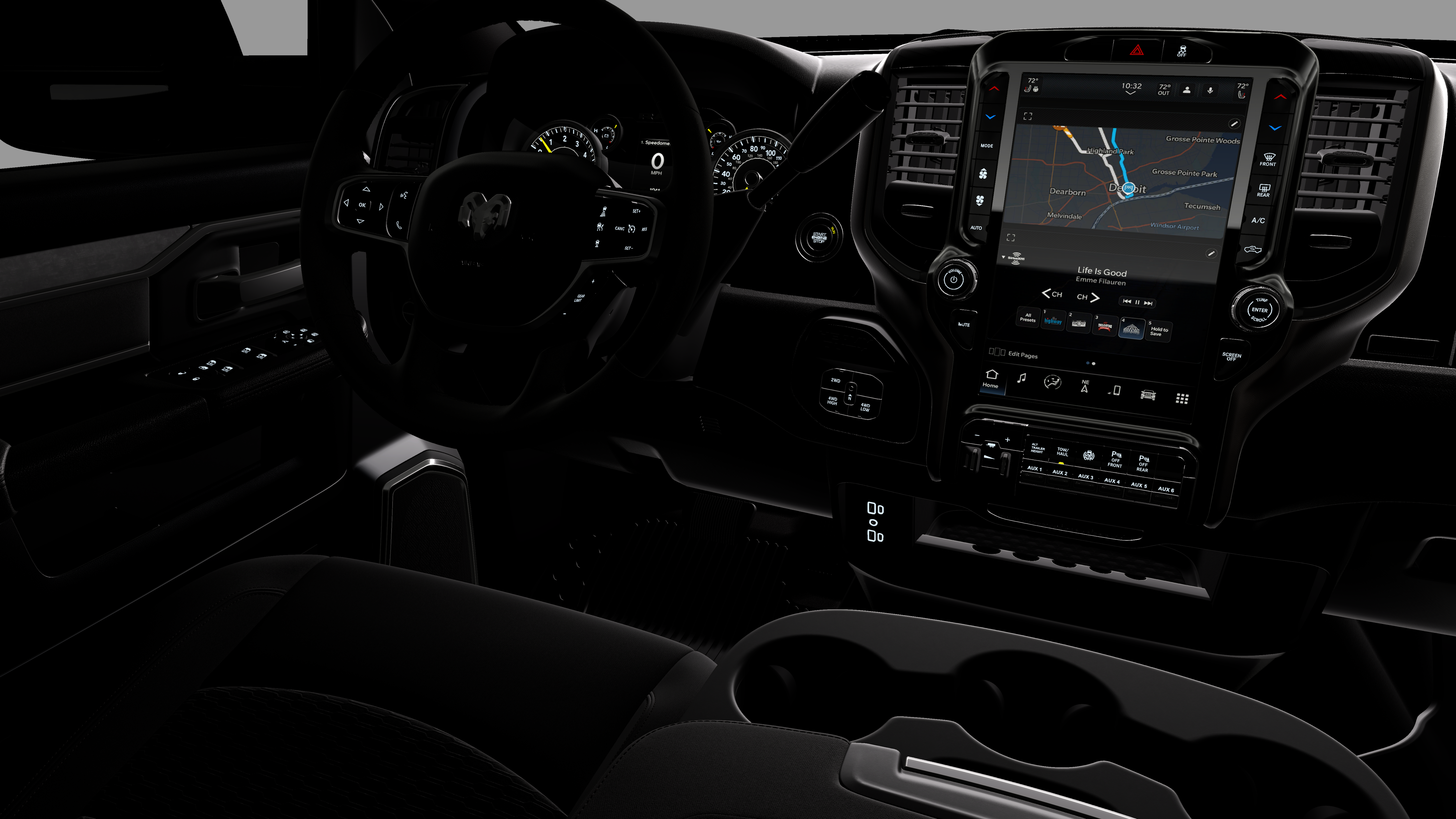 - Radio w/Seek-Scan, Clock, Speed Compensated Volume Control, Aux Audio Input Jack, Voice Activation, Radio Data System and Uconnect External Memory Control