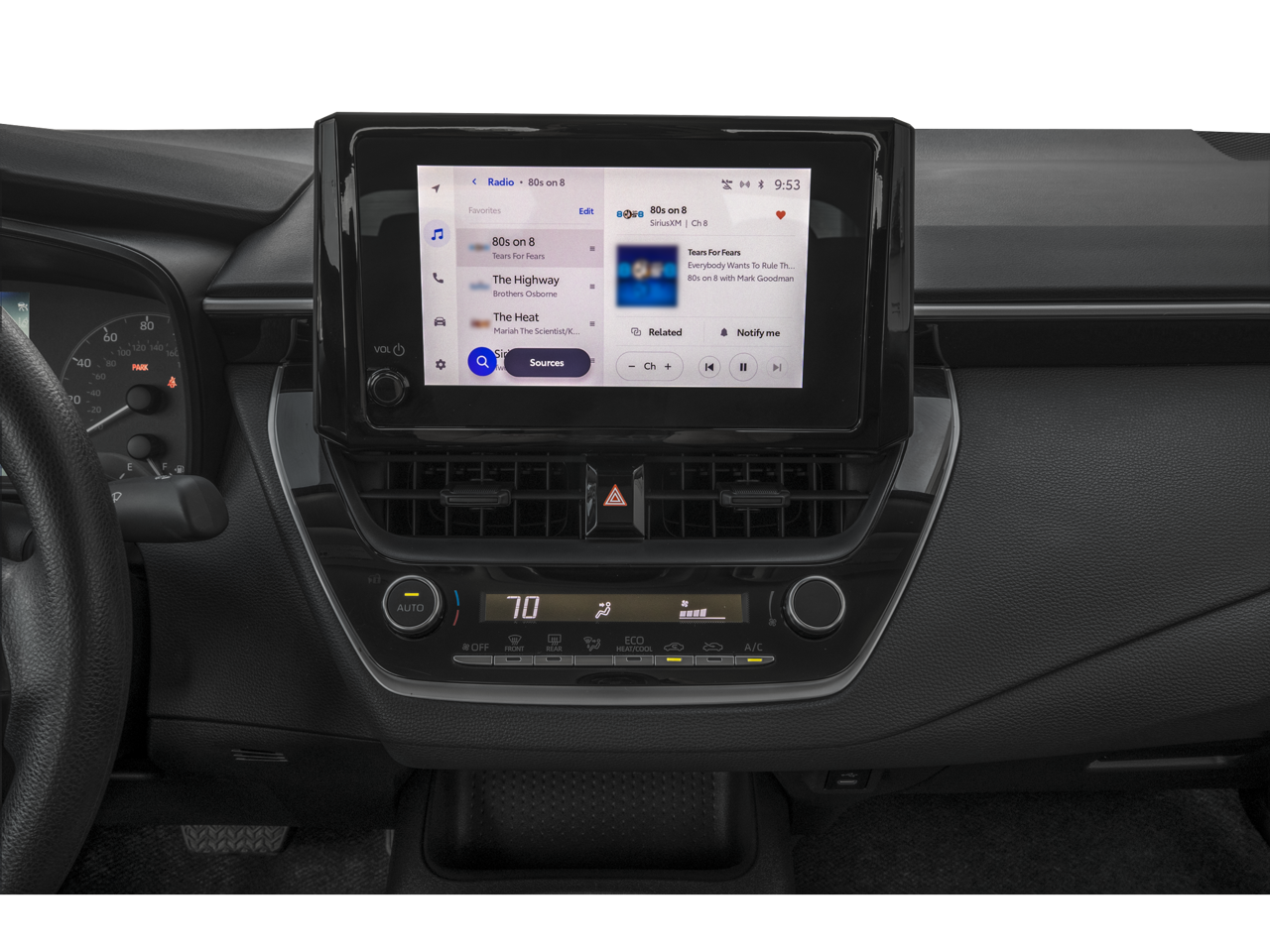 - 8-in. Toyota Audio Multimedia touchscreen with six speakers, wireless Apple CarPlay® [carplay_wireless]& Android Auto™ [android_auto_wireless]compatibility, SiriusXM® [siriusxm] 3-month trial subscription. See toyota.com/audio-multimedia for details.