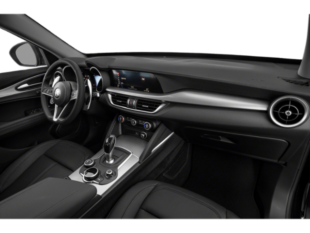 Inside, the Stelvio's premium cabin is appointed with luxurious features, including heated front seats, a heated steering wheel, and a dual-pane sunroof that floods the interior with natural light. The 8.8-inch widescreen display provides intuitive control over the advanced infotainment system, which includes navigation, Bluetooth® connectivity, and a premium audio setup.