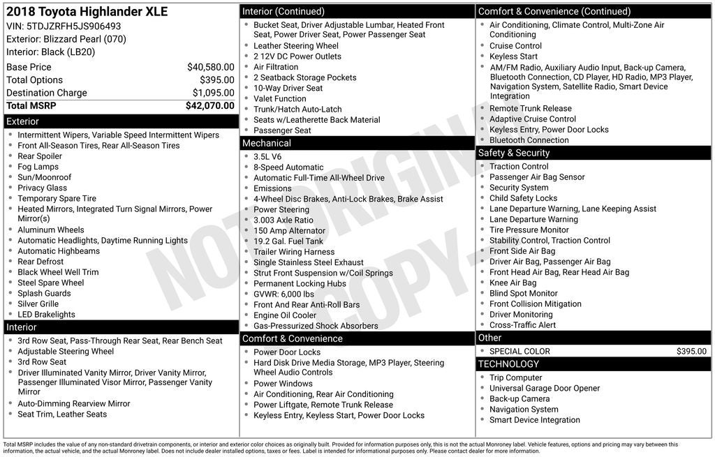 - Vehicle Name: Toyota Highlander