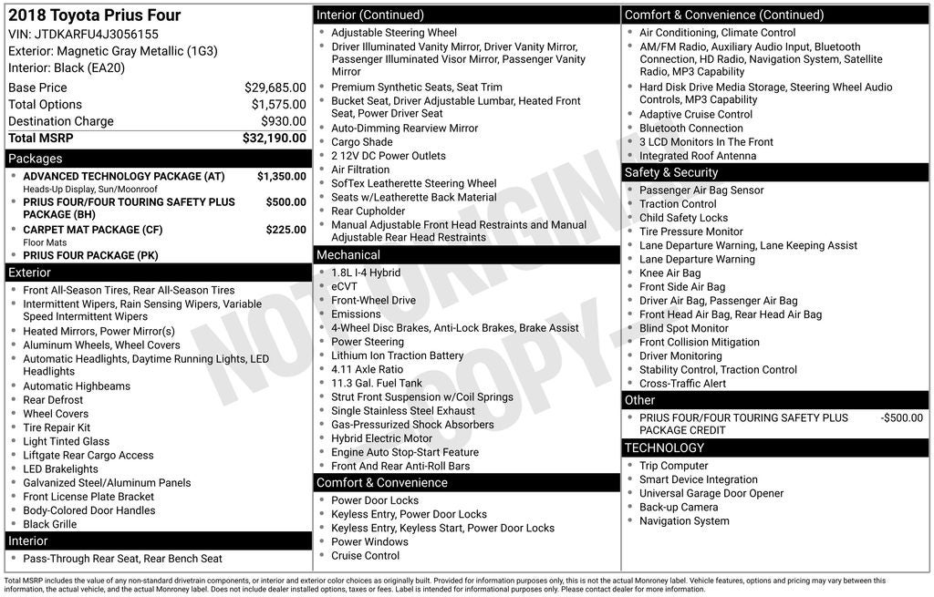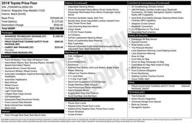 Advanced Technology Package: Power Tilt/Slide Moonroof with Sliding Sunshade, Color Head Up Display (HUD) with Speedometer, Navigation and Hybrid System Indicator