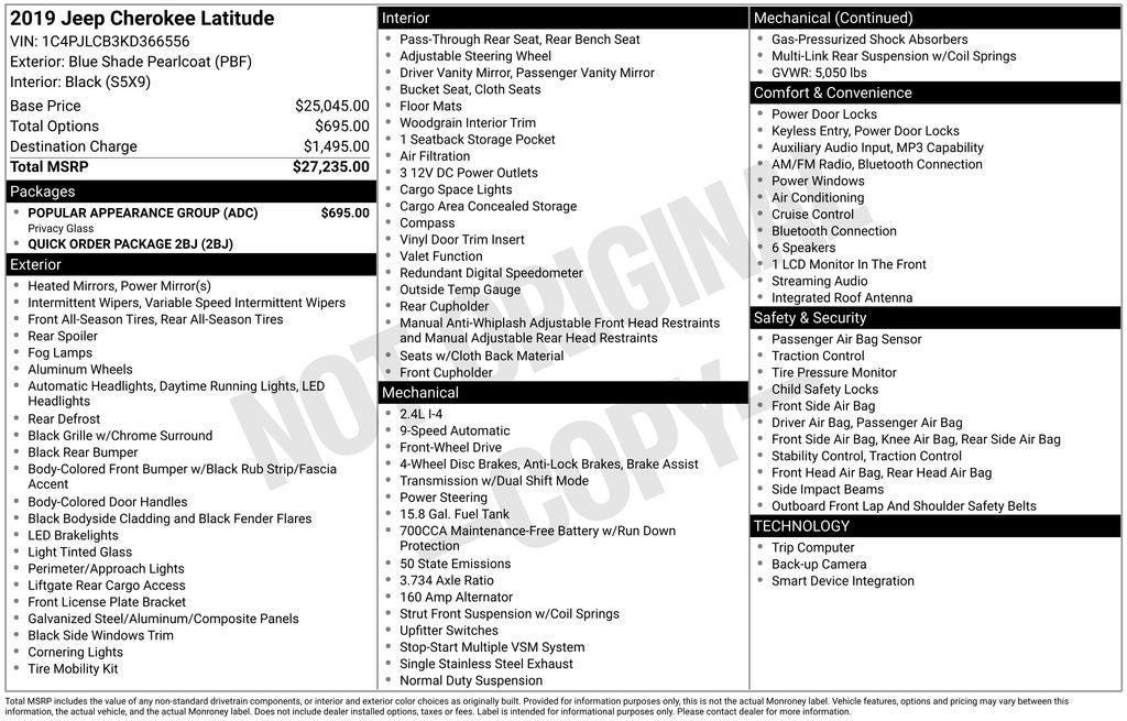 2019 Jeep Cherokee Latitude Blue Shade Pearlcoat FWD 2.4L I4 9-Speed 948TE Automatic 22/31 City/Highway MPG