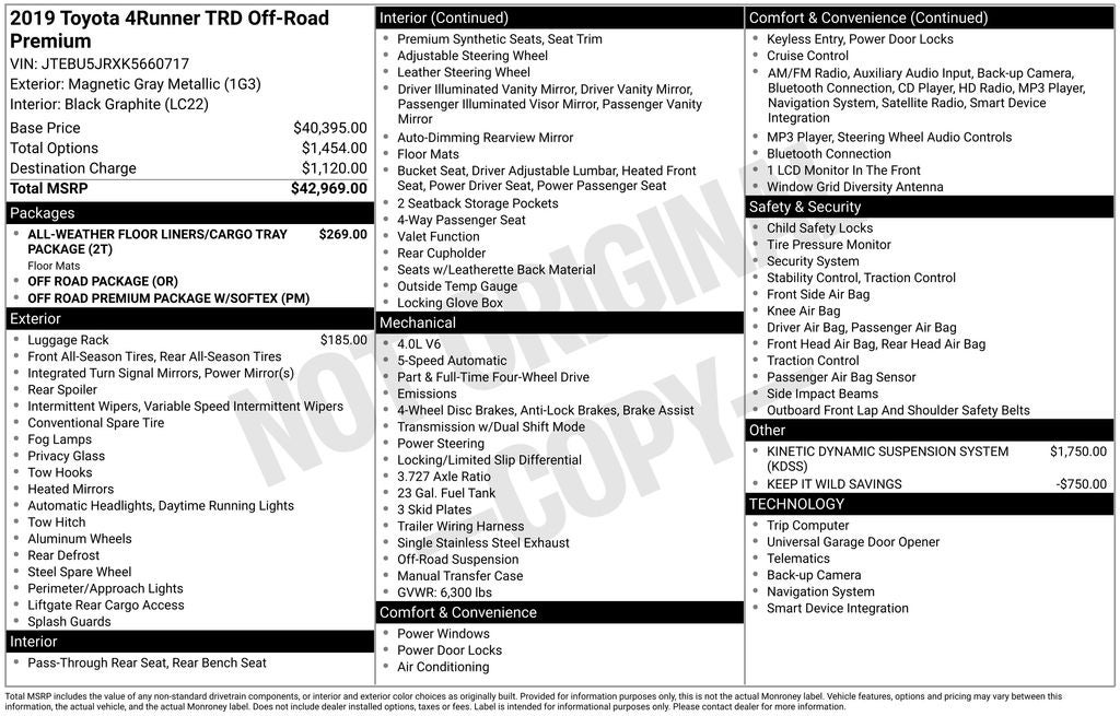 - Wheels: 17" x 7.5" 7-Spoke Unique Off-Road Alloy