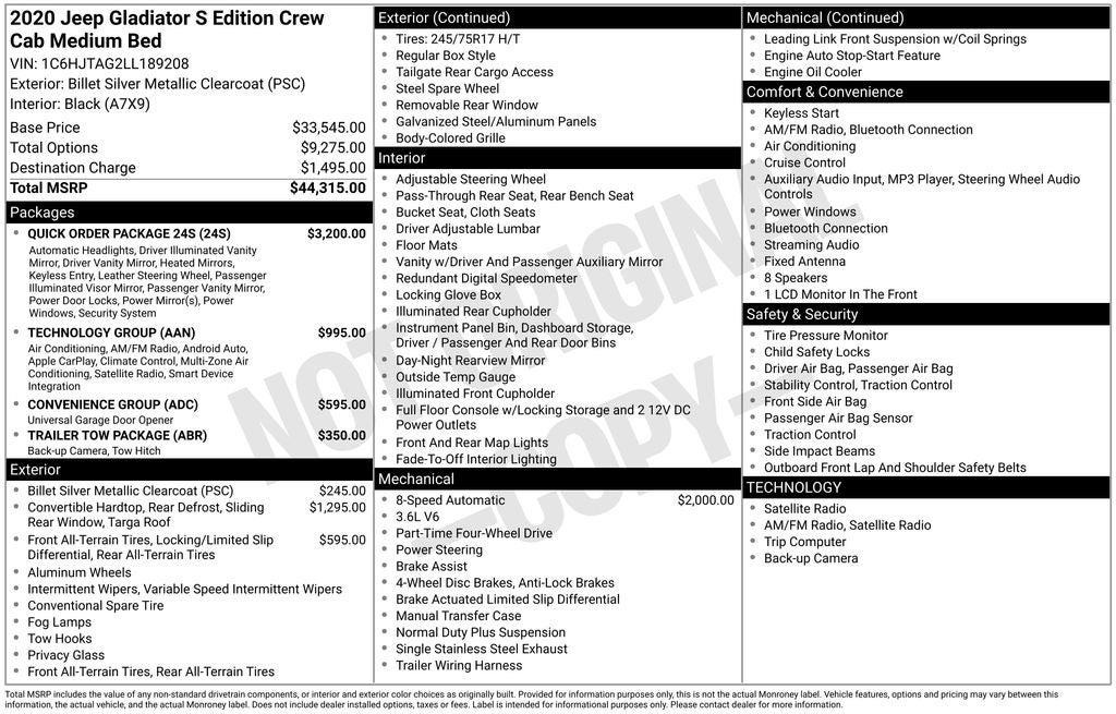 - Vehicle Name: Jeep Gladiator