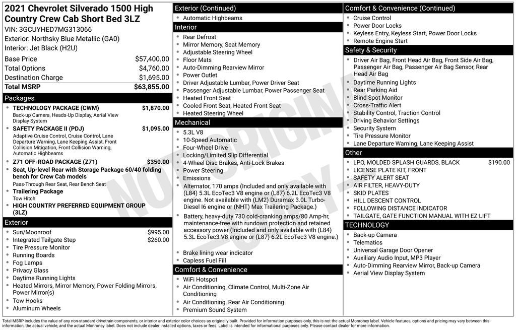 Experience the unparalleled capabilities and refined luxury of the 2021 Chevrolet Silverado 1500 High Country. Visit our showroom today and let us demonstrate how this exceptional vehicle can elevate your driving experience.
