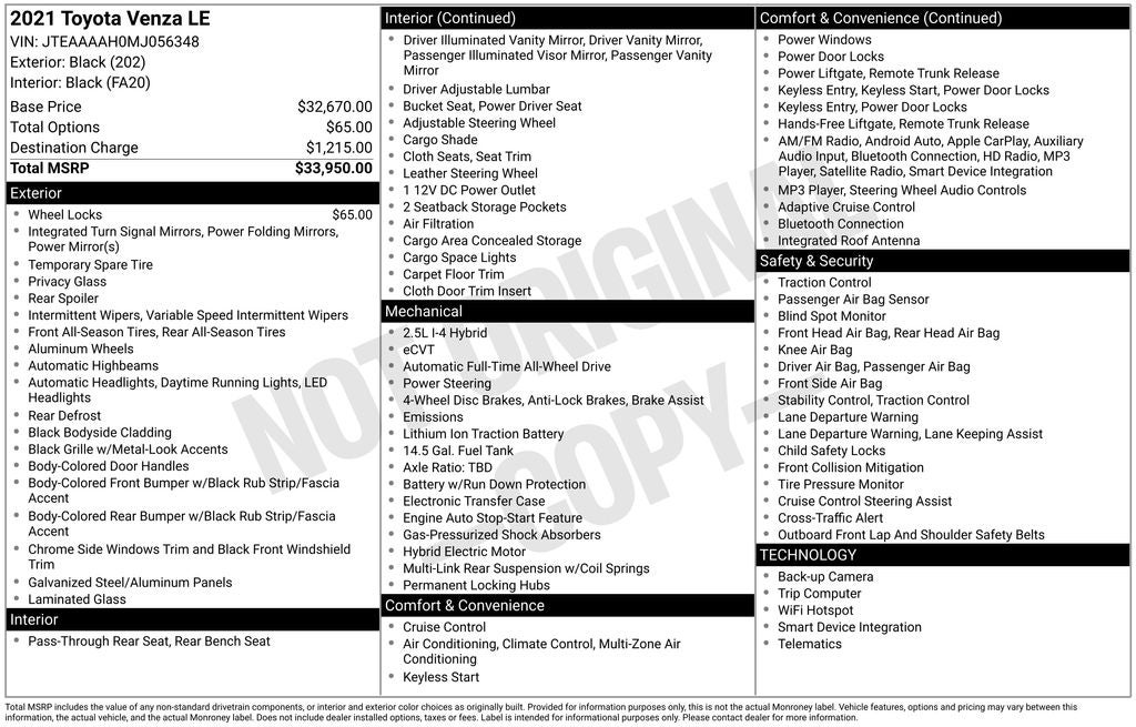 2021 Toyota Venza LE