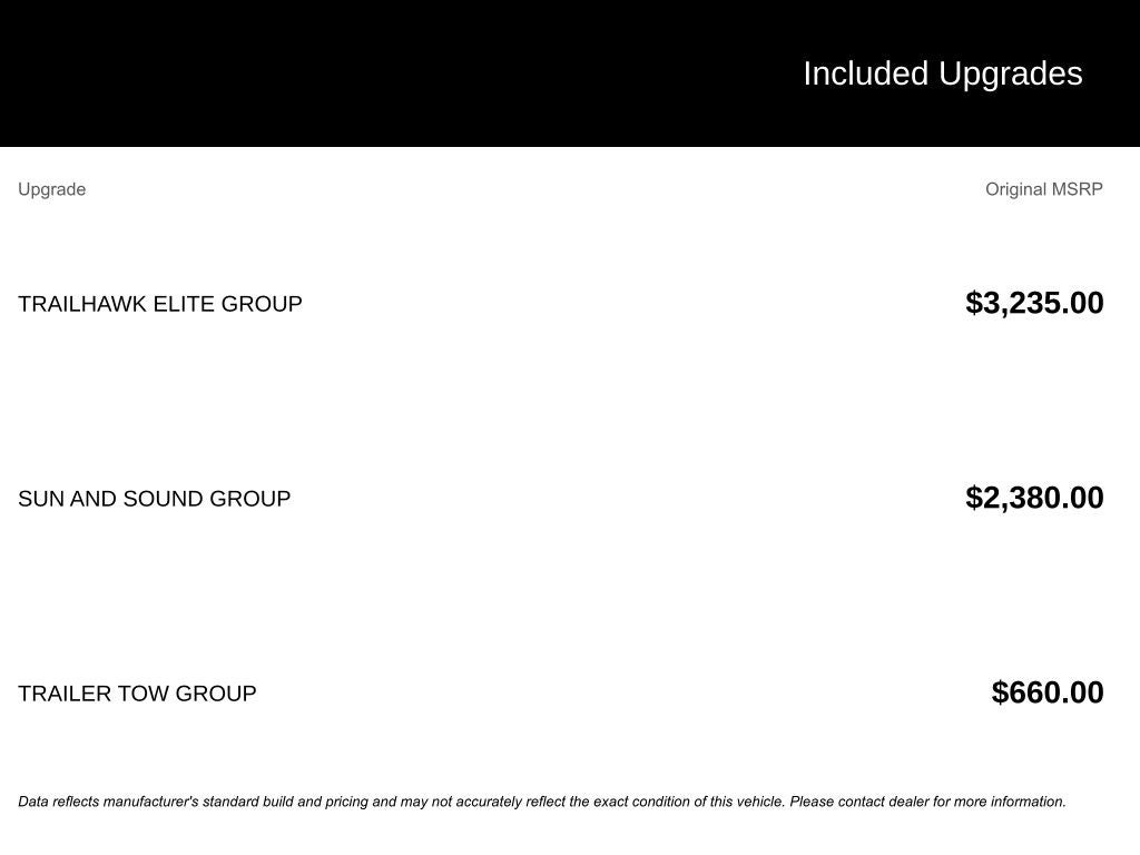 - TRAILHAWK ELITE GROUP: Includes SiriusXM Radio Service, Integrated Voice Command with Bluetooth®, GPS Navigation, 4G LTE Wi-Fi Hot Spot, Heated Front Seats, 2nd Row Heated Seats, Power Liftgate, and much more