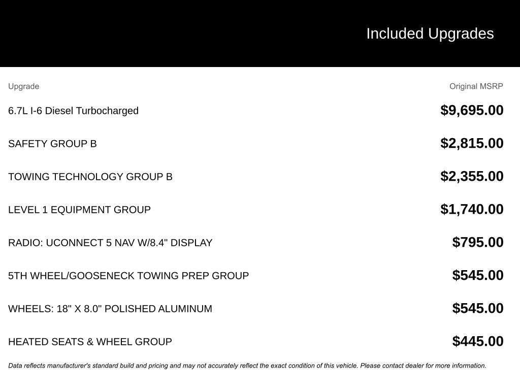 This Ram 2500 is equipped with a powerful Cummins 6.7L I6 Turbodiesel engine, delivering exceptional towing and hauling capabilities. The 4X4 all-wheel-drive system ensures confident handling in any terrain, while the tow package and 5th wheel/gooseneck prep make this truck a true workhorse. The remote start system and heated seats and steering wheel provide added comfort and convenience, making this Ram 2500 a true all-around performer.