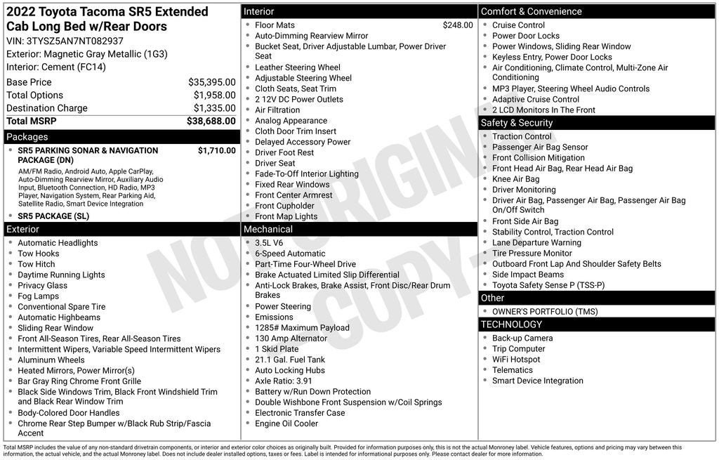 - Vehicle Name: Toyota Tacoma 4WD