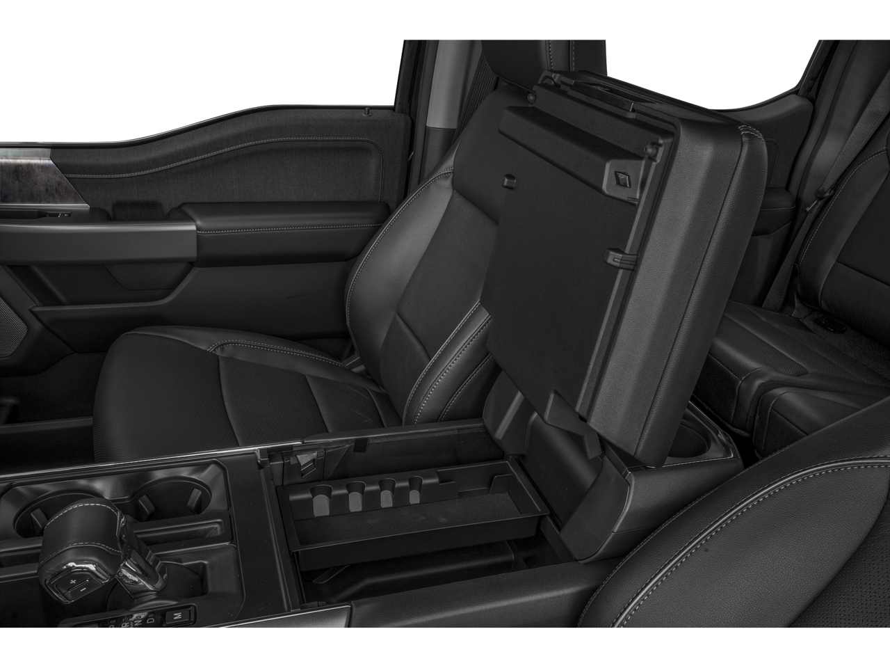 Step inside this Lariat trim and be enveloped in the luxurious leather-trimmed bucket seats, which offer both heating and ventilation for your ultimate comfort. The Wireless Charging Pad and Interior Work Surface add convenience and functionality to your daily drives, while the Partitioned Lockable Fold-Flat Storage ensures your belongings are secure and organized.