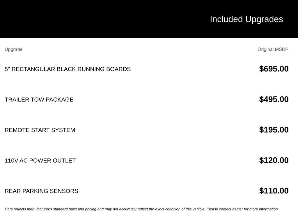 - Tires: P255/65R17 A/T BSW