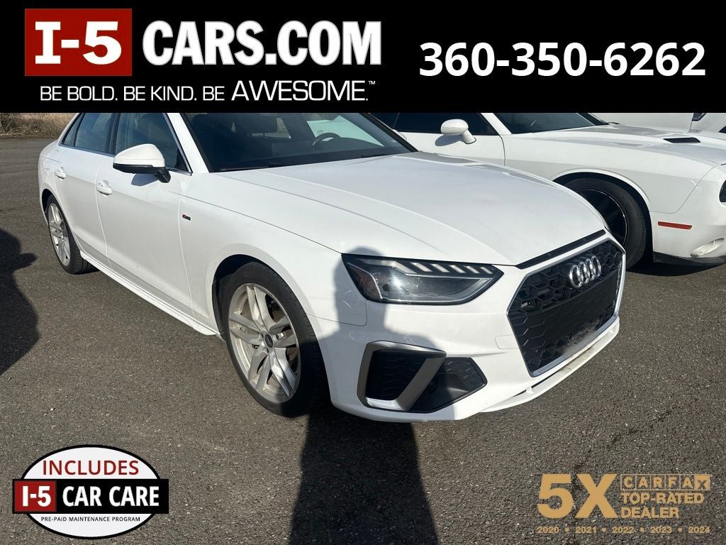 This Audi A4 is powered by a 2.0L 4-Cylinder TFSI engine paired with a 7-Speed Automatic S tronic transmission and quattro all-wheel drive, delivering an exhilarating driving experience with impressive fuel efficiency of 24 city/32 highway MPG.