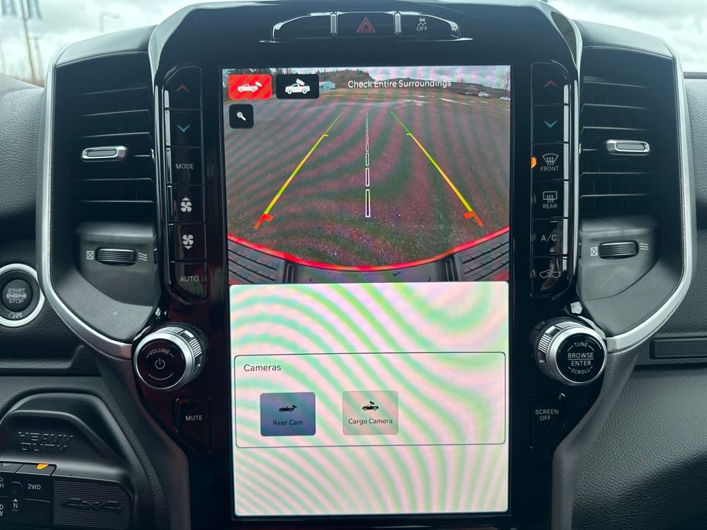 The interior of this Ram 3500 Big Horn is equally impressive, with premium cloth bucket seats, a heated steering wheel, and a host of advanced technology features. The Uconnect 5 infotainment system with a 12-inch touchscreen display keeps you connected and entertained, while the 9-speaker Alpine audio system delivers an immersive listening experience.