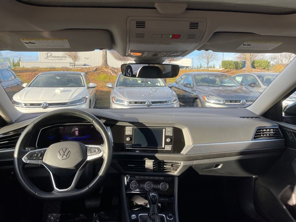 The interior of this Jetta is both stylish and practical. Sink into the heated, leather-trimmed seats and enjoy the convenience of dual-zone automatic climate control. The intuitive infotainment system, complete with a 6.5-inch touchscreen, keeps you connected and entertained on every journey.